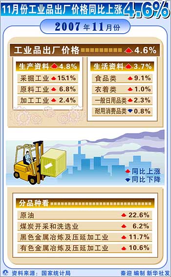 11月份工業(yè)品出廠價(jià)格同比上漲4.6%[圖表]