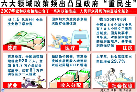 在農(nóng)村基層,廣大農(nóng)民對(duì)國(guó)家實(shí)施的一系列惠農(nóng)政策交口稱(chēng)贊。江西省豐城市團(tuán)結(jié)村村民晏春水說(shuō):“現(xiàn)在黨的政策好啊,不僅種田、種糧不要繳稅,就連養(yǎng)豬也有補(bǔ)貼,真是幾輩子也不敢想的事!” 民生工程如“潤(rùn)滑劑”,融洽著黨群干群關(guān)系。四川省委組織部部長(zhǎng)劉中柏介紹說(shuō):“如今農(nóng)民負(fù)擔(dān)減下來(lái)了,地方政府不用擔(dān)心以往農(nóng)民與政府對(duì)立狀況,也不用再為農(nóng)民負(fù)擔(dān)過(guò)重引發(fā)的社會(huì)穩(wěn)定問(wèn)題擔(dān)驚受怕,黨群干群關(guān)系緩和了!蹦壳埃鹗加谵r(nóng)村的“民生工程”激起的漣漪正在不斷地在向城市擴(kuò)展,入學(xué)難、就醫(yī)難、買(mǎi)房難、出行難等關(guān)系群眾衣食住行的老大難問(wèn)題逐步得到緩解,困難群體更多地沐浴到公共財(cái)政“陽(yáng)光”。 劉中柏說(shuō),“民生工程”的實(shí)施也悄然地促使基層干部改善工作作風(fēng),轉(zhuǎn)變政府職能。如今,許多干部開(kāi)始主動(dòng)深入基層、深入農(nóng)村、社區(qū),傾聽(tīng)群眾呼聲,了解群眾困難,有針對(duì)性解決他們的實(shí)際困難,為群眾辦好事、辦實(shí)事。聯(lián)系群眾、服務(wù)群眾在基層蔚然成風(fēng)。一些群眾伸出大拇指稱(chēng)贊:“五、六十年代的黨員干部?jī)?yōu)良作風(fēng)又回來(lái)了!” 江西省豐城市委書(shū)記冷新生告訴記者,為把民生工程落到實(shí)處,豐城市將城鄉(xiāng)低保、就業(yè)、農(nóng)村新型合作醫(yī)療等民生項(xiàng)目列為各級(jí)政府和部門(mén)考核的剛性指標(biāo),納入政府年度目標(biāo)予以考核,強(qiáng)調(diào)民生指標(biāo)不打任何折扣。僅2006年,豐城市財(cái)政用于民生工程的資金就達(dá)1億多元。今年,豐城市將新增財(cái)力向困難群眾傾斜,向農(nóng)村傾斜,向基層傾斜,向社會(huì)事業(yè)傾斜,全年安排財(cái)政資金3.5億元改善民生,把抽象的“幸福指數(shù)”落實(shí)到實(shí)實(shí)在在的群眾生產(chǎn)生活中。 冷新生說(shuō),政府出資金,百姓得實(shí)惠,民生工程給豐城市政府形象和干群關(guān)系帶來(lái)了顯著變化。
