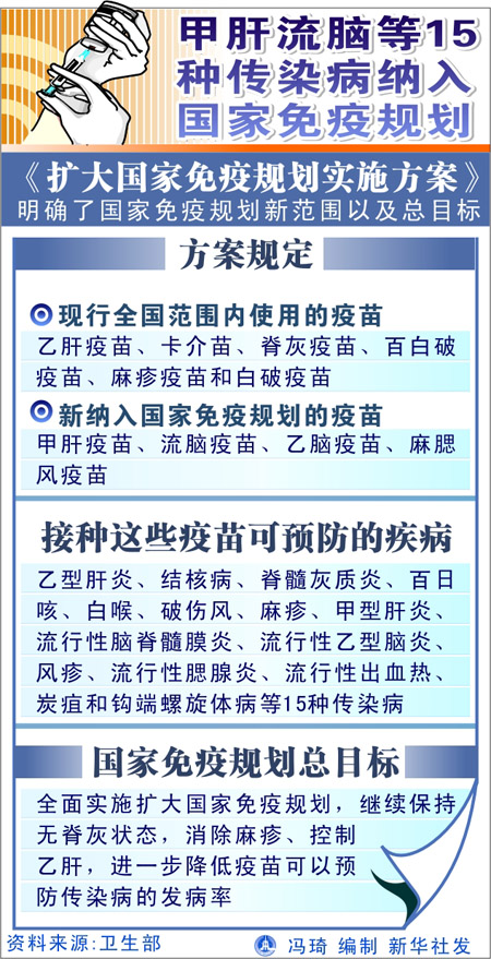 甲肝流腦等15種傳染病納入國(guó)家免疫規(guī)劃[圖]