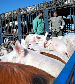 生豬運銷大戶正在裝車運豬。新華社記者 齊海山