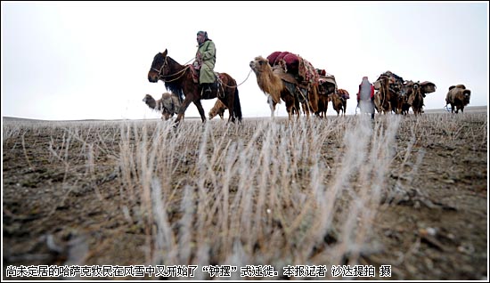 一家老小都在馬上,幾峰駱駝馱著蒙古包和鍋碗瓢盆,三兩只忠實的牧羊犬照應(yīng)著羊群邊吃邊走。阿勒泰草原上的哈薩克族牧民,數(shù)百年來,就這樣南北往返,每年搬家80余次。如今,當(dāng)?shù)卣畬嵤┑摹澳撩穸ň印惫こ,正在改寫著這一歷史。 新疆阿勒泰地區(qū)行署介紹,截至目前,全地區(qū)累計定居牧民8914戶,約三成牧民家庭實現(xiàn)了定居。計劃從2008年起,3年內(nèi)再實現(xiàn)6000戶牧民定居、轉(zhuǎn)移安置牧民3萬人。 2000年第五次全國人口普查數(shù)字顯示,我國哈薩克族人口總數(shù)為125.04萬人,而包括阿勒泰地區(qū)在內(nèi)的伊犁哈薩克自治州,其哈薩克族人口就有108.74萬人。伊犁哈薩克自治州各地哈薩克牧民逐漸定居,意味著我國哈薩克族人民的生產(chǎn)生活方式,發(fā)生了重大改變。 “為什么要讓牧民定居?”阿勒泰地區(qū)行署副專員戴建新說,“(牧民)一年搬家80多次,什么樣的現(xiàn)代生活條件都談不上;牧民‘逐水草而居’,飼養(yǎng)牲畜效率也遠遠比不上定居飼養(yǎng),原先20畝天然草場才能承載的牲畜,現(xiàn)在用一畝地的人工草場就足以養(yǎng)活”。 人口與草場之間的矛盾,使得牧民定居工作更顯迫切。戴建新說,上個世紀(jì)80年代中期,阿勒泰地區(qū)只有1.5萬戶至1.6萬戶的哈薩克族牧民。如今,這些牧民家庭總數(shù)已經(jīng)發(fā)展到2.5萬余戶!安輬鲞是那么大,但一個有著3個兒子的牧民家庭,已經(jīng)變成一分為四了。”超載的草場難以讓牲畜吃飽,牲畜就刨草根吃,這又使草場退化更加嚴(yán)重。 目前,阿勒泰地區(qū)可利用草場的退化面積已達70%,其中嚴(yán)重退化面積達40%…… 福?h齊干吉迭鄉(xiāng)賽克露村的哈薩克族牧民阿德里汗今年65歲,如今,他家已經(jīng)在當(dāng)?shù)卣馁Y金補貼之下蓋起了房子,過上了定居生活。阿德里汗說:“往年,家中6口人,500只羊、25頭牛和15匹馬,都要在阿爾泰山和沙吾爾山之間將近600公里的路上,走個來回。生病,只要不是大病,都得挺著! 阿德里汗說,更要命的是,不管你家里有多少牲畜,只要碰上大的雪災(zāi),可能就一夜之間全完了。據(jù)福?h畜牧局統(tǒng)計,1949年至1999年間,全縣共發(fā)生過10次較大規(guī)模的自然災(zāi)害,平均5年一次,共損失牲畜40.7萬頭。其中1966年和1976年兩次災(zāi)害致使25.7萬頭牲畜死亡,當(dāng)年全縣存欄牲畜損失過半。 阿德里汗說,定居一年多來,家里通了電,用上了電燈、電視和冰箱,這些享受以前在游牧生活中想都不敢想,F(xiàn)在年輕人每天看電視,許多人考慮出門打工、做生意,不想回到山里去了。 |
