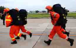 5月12日,中國國家地震災害緊急救援隊隊員在北京南苑機場集結(jié)。 當日,中國地震局新聞發(fā)言人張宏衛(wèi)通報,針對四川汶川地震,中國地震局已啟動一級預案,一支180人的救援隊已經(jīng)集結(jié)。新華社記者:王建華