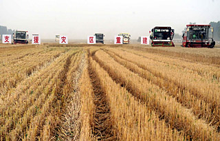 由農(nóng)業(yè)部組織的“全國小麥跨區(qū)機收啟動儀式”5月25日在河南南陽舉行,標(biāo)志著今年的“三夏”會戰(zhàn)正式打響。在全球糧價上漲、供求緊張的國際背景下,在我國抗震救災(zāi)仍處在刻不容緩的緊要關(guān)頭,全國夏糧有望再次豐收,令人鼓舞,催人奮進,發(fā)出多重有力的信號。[全文] |
