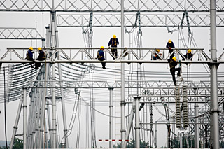 | 安徽省電力公司加快在建發(fā)電廠送出項(xiàng)目的建設(shè)速度,力爭早日并網(wǎng)發(fā)電,以緩解今夏華東電網(wǎng)用電缺口。圖為安徽省電力公司員工在淮北500千伏濉溪變電站進(jìn)行接火作業(yè)。新華社發(fā)(王文