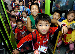| 為緩解“用工荒”,晉江市開辦了外來工子弟學(xué)校,學(xué)校還為離校較遠的學(xué)生配備了接送專車。新華社記者 張國俊