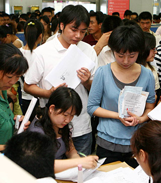 | 江蘇南通數(shù)千名大學(xué)生競(jìng)相報(bào)名當(dāng)“村官”。新華社發(fā)(江建華