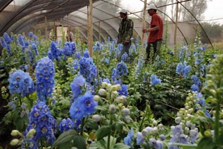 甘肅河西走廊制種產(chǎn)業(yè)方興未艾。圖為張掖市高臺(tái)縣新壩鄉(xiāng)小泉村農(nóng)民種植的用于制種的飛燕草。新華社記者:韓傳號(hào) 攝 |