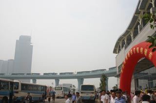 8月31日,多輛公交車正通過高架橋駛往廈門市快速公交1號線起點站第一碼頭站。 當(dāng)日,廈門市快速公交系統(tǒng)正式開通,廈門市區(qū)交通擁堵問題將大為緩解。廈門市快速公交系統(tǒng)通過在鬧市區(qū)建設(shè)高架橋,實現(xiàn)了快速公交的專有路權(quán),全程不設(shè)紅綠燈,從而保障了快速公交車的暢行和準(zhǔn)點。據(jù)悉,這是目前國內(nèi)首個采取高架橋模式的快速公交系統(tǒng),走出了一條有別于地面專用公交車道和地鐵、輕軌、符合中等城市實際的公交之“道”。 |