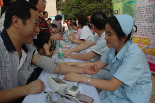 圖為江北區(qū)社區(qū)服務(wù)機(jī)構(gòu)工作人員為轄區(qū)居民免費(fèi)體檢。 自2007年開(kāi)始,江北區(qū)每年投入1050萬(wàn)元,用于社區(qū)衛(wèi)生服務(wù)機(jī)構(gòu)基礎(chǔ)設(shè)施建設(shè)和社區(qū)衛(wèi)生服務(wù)人才培養(yǎng)。這個(gè)區(qū)率先在全市推出城鄉(xiāng)居民公共衛(wèi)生服務(wù)券(卡)制度和城鄉(xiāng)衛(wèi)生服務(wù)中心藥品“零差率”銷(xiāo)售,向城鄉(xiāng)居民免費(fèi)提供計(jì)劃免疫、兒童保健和圍產(chǎn)期保健服務(wù),有效緩解了城鄉(xiāng)居民群眾“看病貴”的問(wèn)題。 |