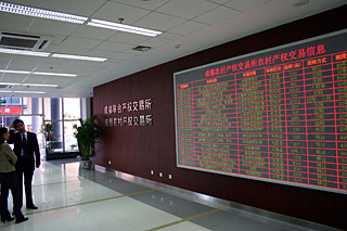 | 國(guó)內(nèi)首個(gè)農(nóng)村產(chǎn)權(quán)綜合性市場(chǎng)平臺(tái)——成都農(nóng)村產(chǎn)權(quán)交易所揭牌成立。該交易所將通過對(duì)土地承包經(jīng)營(yíng)權(quán)、農(nóng)業(yè)類知識(shí)產(chǎn)權(quán)等欲轉(zhuǎn)讓農(nóng)村產(chǎn)權(quán)信息進(jìn)行收集發(fā)布、科學(xué)評(píng)估和專業(yè)服務(wù),推動(dòng)農(nóng)村產(chǎn)權(quán)的合理流動(dòng),實(shí)現(xiàn)農(nóng)村資本的有序流轉(zhuǎn)。新華社記者