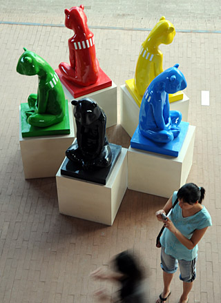 | 游客在798藝術(shù)區(qū)創(chuàng)意廣場觀看藝術(shù)作品展覽。新華社發(fā)(樊甲山