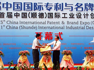 | 國(guó)家工業(yè)設(shè)計(jì)與創(chuàng)意產(chǎn)業(yè)基地9月落戶廣東順德。廣東佛山順德區(qū)副區(qū)長(zhǎng)蘇偉波(左)從國(guó)家知識(shí)產(chǎn)權(quán)據(jù)副局長(zhǎng)張勤(右)手中接過“國(guó)家工業(yè)設(shè)計(jì)與創(chuàng)意產(chǎn)業(yè)(順德)基地”牌匾。本報(bào)記者