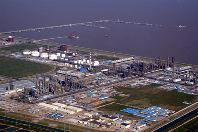 | 上;瘜W(xué)工業(yè)區(qū)鳥瞰 | “對(duì)不起,雖然項(xiàng)目很大,但是不能入園。首先不符合我們園區(qū)產(chǎn)業(yè)鏈發(fā)展,更重要的是這個(gè)項(xiàng)目沒有達(dá)到我們的環(huán)保指標(biāo)!苯K揚(yáng)州化工園區(qū)管委會(huì)主任周正權(quán)婉言謝絕了一個(gè)化工項(xiàng)目的入園申請(qǐng),而這個(gè)項(xiàng)目的年產(chǎn)值達(dá)數(shù)十億元。 這樣的拒絕在長(zhǎng)江三角洲地區(qū)的大型園區(qū)里十分常見。記者在采訪中了解到,盡管目前國(guó)際經(jīng)濟(jì)環(huán)境持續(xù)惡化,但在嚴(yán)格的審批制度和環(huán)保、安全標(biāo)準(zhǔn)下,長(zhǎng)三角的化工園區(qū)憑借企業(yè)關(guān)聯(lián)度高、產(chǎn)品服務(wù)一體化等優(yōu)勢(shì),已經(jīng)成為我國(guó)優(yōu)勢(shì)化工企業(yè)聚集地,集群化發(fā)展也成為長(zhǎng)江三角洲地區(qū)發(fā)展化工經(jīng)濟(jì)一大特色。