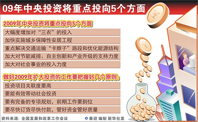 2009年中央投資將重點(diǎn)投向五個(gè)方面[圖表]