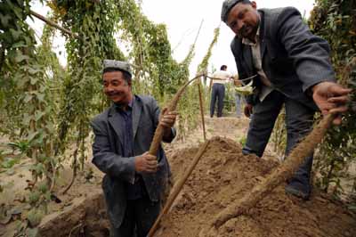 種植山藥成為策勒縣發(fā)展沙產(chǎn)業(yè)的一大亮點(diǎn)新華社記者:沈橋