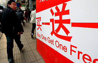 走進(jìn)上海各大商場(chǎng),“滿300送300券”“買300折150元”的海報(bào)滿目皆是,人流如浪潮般涌來(lái),促銷員高分貝的“特賣”聲音敲擊耳膜,讓人們暫時(shí)忘記了正在波及全球的金融風(fēng)暴。 試衣間門口、收銀臺(tái)前、電梯上下,“排隊(duì)”成為無(wú)一例外的“規(guī)定動(dòng)作”。在上海梅龍鎮(zhèn)廣場(chǎng),一名等待試衣的女孩氣喘吁吁,手里抱著大衣,肩上搭著褲子,“排一次隊(duì)不容易,索性把看上的衣服都帶進(jìn)去一次試好!彼f(shuō)。 上海南京路眾多商廈自11月上旬起啟動(dòng)“百日營(yíng)銷”活動(dòng),用明扣或打折送券等方式擴(kuò)大銷售。12月6日、7日兩個(gè)雙休日,新世界商場(chǎng)銷售額一舉突破億元大關(guān),僅7日接待客流接近50萬(wàn)人次,逼近國(guó)慶黃金周日最高客流,日銷售額突破5800萬(wàn)元。第一百貨、永安百貨、巴黎春天等商場(chǎng)也紛紛展開攻勢(shì),各類營(yíng)銷活動(dòng)此起彼伏,面對(duì)不息的人流,部分店家只好采用“進(jìn)一批,出一批”的方法分批入場(chǎng)。全場(chǎng)買贈(zèng)的營(yíng)銷策略也吸引了不少男士,“平日里不愛逛商場(chǎng),但這次傾巢而出也是明智之舉,實(shí)惠啊!币蝗簳r(shí)尚男士穿梭在人群里,格外顯眼。