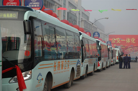 長(zhǎng)株潭城市群已開(kāi)通了6條一體化公交線路。 |