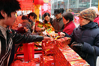 | 新春佳節(jié)將至,各地年貨市場也逐漸升溫。安徽合肥的一些大型超市前開設(shè)了專門的年貨市場供市民們選購。從南北干貨、各地特產(chǎn),到各色糖果、節(jié)日用品。選購年貨備新年的市民絡(luò)繹不絕。新華社發(fā)(實習(xí)生