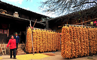| 云南省祿豐縣土官鎮(zhèn)烏龍?zhí)洞宕迕裢豕庀杉掖笤豪飹鞚M了豐收的玉米。她家8畝玉米地喜獲豐收,可獲得收入1.36萬元。本報(bào)記者