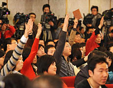 李肇星像個指揮家,從走進水泄不通的十一屆全國人大二次會議新聞發(fā)布會現(xiàn)場,這位發(fā)言人的一舉一動都會引來“咔咔咔”一連串的快門聲。這位中國前外長妙語連珠,不時引起現(xiàn)場陣陣笑聲。原定一個小時的新聞發(fā)布會被一再延長,最后用了將近兩個小時。 艷麗的服飾、彩色筆記本、加長話筒和揮舞的報紙都成為記者們爭取提問機會的“工具”!澳膲夭婚_提哪壺”、“患難見真情”、“君子愛財、取之有道”……李肇星這些生動語言給在場的記者留下了深刻印象。 “我是邊干邊學(xué)!崩钫匦瞧届o地看待自己從外交部長到全國人大外事委員會主任委員角色的轉(zhuǎn)變,“人的職務(wù)總是會有變化的,對我來說不變的是,我是祖國的兒子、人民的服務(wù)員、朋友的朋友、知識面前的小學(xué)生!彼f。 確實,在整場發(fā)布會中,他還像是以前的那位敏銳犀利的外長,但是又似乎不止如此,還像一個友善的朋友、一個勤奮的學(xué)生。 在一張一弛中,會場的氣氛變得既緊張認真,又輕松活躍。鳳凰衛(wèi)視一位短發(fā)美女記者站起身來,提出了節(jié)約辦會、會期縮短原因和地方為兩會代表發(fā)放補貼等一連串問題,李肇星聽完后側(cè)過頭去和坐在他右邊的新聞發(fā)布會主持人李連寧低聲交流了一下,兩人都笑了起來,他隨即正色道:“人大工作的特點是嚴格按照法律和法律程序辦事,剛才主持人已經(jīng)宣布,每位記者只提一個問題,可是您一共提了3個!痹趫龅挠浾哳D時感受到這位前外長的鋒芒,但是,話鋒一轉(zhuǎn),他又說,“在下不為例的前提下,我愿意回答你所有的問題!睅е鴿庵厣綎|口音的李肇星完全掌握了節(jié)奏。 他在新崗位上的學(xué)習(xí)成績看起來很不錯;卮鸸(jié)約辦兩會的問題時,他舉起了一個紅色的小本本告訴記者,《中華人民共和國憲法》中有“反對浪費”的規(guī)定,國宴都改革為三菜一湯,不上白酒了。后來,他又一次舉起了這本《中華人民共和國憲法》,托著腮說,“這一年多來,我學(xué)得最多的就是憲法!薄斑沁沁恰薄质且贿B串快門聲。 一位地方報紙的記者好不容易被點名,拿到話筒后顯得非常緊張,至少過了五秒鐘才意識到自己把話筒拿倒了,這把在場的記者都逗樂了,他的臉也漲得通紅。李肇星笑著對他說:“不要緊張嘛!”在新聞發(fā)布會結(jié)束時,李肇星還不忘對身邊的翻譯孫寧表示感謝,主席臺上并沒有這位年輕小伙子的名字,沖著這份尊重,現(xiàn)場的記者給了李肇星一陣熱烈的掌聲。