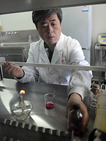 國家首批生物產(chǎn)業(yè)基地之一的長春市,著力打造實(shí)驗(yàn)動(dòng)物繁育與實(shí)驗(yàn)中心、基因工程藥物實(shí)驗(yàn)中心、生物酶工程技術(shù)中心、疫苗研發(fā)工程中心、藥物篩選中心、中藥制劑工程研究中心、中藥前處理公共平臺(tái)、輻照滅菌裝置中心、食品藥品檢驗(yàn)中心、醫(yī)藥科技信息咨詢服務(wù)中心等十大公共平臺(tái)。 圖為東北師范大學(xué)教育部農(nóng)業(yè)與醫(yī)藥基因工程研究中心、藥物基因和蛋白篩選國家工程實(shí)驗(yàn)室的工作人員在進(jìn)行藥物篩選實(shí)驗(yàn)。 | |