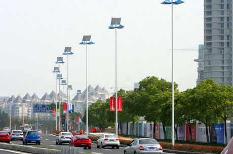 近日,蘇州工業(yè)園區(qū)星港街完成改造,道路兩側(cè)244套太陽能路燈投入使用,從而成為蘇州市區(qū)首條綠色環(huán)保的全太陽能路燈街。新華社發(fā)(王建中攝) |