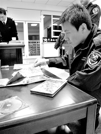 2009年6月2日,大連海關(guān)成功破獲一起利用CD碟片藏匿毒品,通過(guò)國(guó)際郵遞渠道交貨走私海洛因的案件。這份快件三本碟片包裝精美,尺寸適當(dāng),且沒(méi)有拆封痕跡。當(dāng)緊裹在CD碟外盒的紙制外包裝被緝私警察切開(kāi)后,幾個(gè)被壓得薄薄的藍(lán)色塑料袋赫然顯現(xiàn),大量白色粉末均勻地鋪在袋子里。經(jīng)檢驗(yàn),白色粉末為毒品海洛因,共計(jì)247.37克。(孫耘)