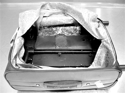 今年6月6日中午11點(diǎn)40分許,從胡志明市飛來(lái)深圳寶安機(jī)場(chǎng)的ZH9872航班抵達(dá),在對(duì)一名越南籍中年男性旅客的行李箱進(jìn)行破壞性檢查后,海關(guān)關(guān)員發(fā)現(xiàn)行李箱夾層內(nèi)有一“方形”扁平物體,是一塊用銀色錫紙包裝的可疑物品,錫紙外面沾滿了辣椒粉!錫紙內(nèi)包裝的物品為散發(fā)出醋酸味的粉末,經(jīng)鑒定,可疑粉末為高純度海洛因,共計(jì)906克。