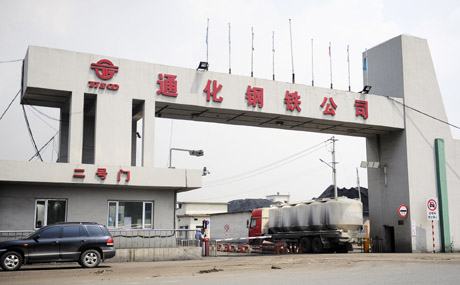 這是7月26日拍攝的吉林通鋼集團(tuán)通化鋼鐵股份公司大門。新華社記者