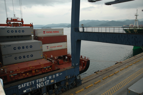 8月17日下午,深圳捐助給臺灣災(zāi)區(qū)的首批100套活動板房從深圳鹽田港啟運,滿載著大陸人民的深情厚誼駛向臺灣高雄港。臺風“莫拉克”使臺灣遭遇50年來最嚴重的水災(zāi),為幫助受災(zāi)的臺灣中南部地區(qū),深圳市委、市政府決定向臺灣捐贈1000套活動板房,面積5萬多平方米,總價值近2000萬元人民幣。圖為裝載活動板房、即將從深圳鹽田港啟運的貨船。