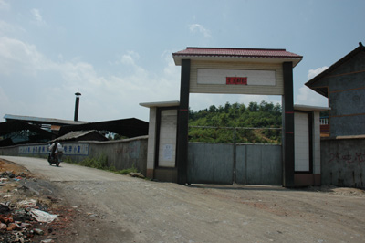 沒有掛任何牌子的湖南省武岡市精煉錳加工廠,大門上方的“招財(cái)進(jìn)寶”四個(gè)大字格外醒目。 |
