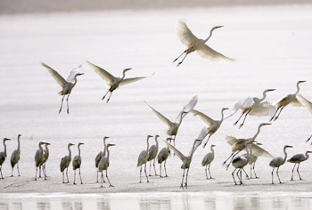 張掖市高臺(tái)縣境內(nèi)的候鳥。本報(bào)記者韓傳 號 攝 |