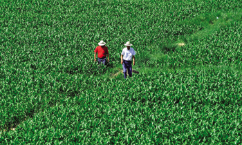 技術(shù)人員從張掖市甘州區(qū)成片的制種玉米中走過。本報(bào)記者 韓傳號
