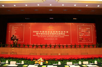 圖為日前在北京舉行的2009中國(guó)飯店業(yè)采購供應(yīng)年會(huì)會(huì)場(chǎng)。張啟欣