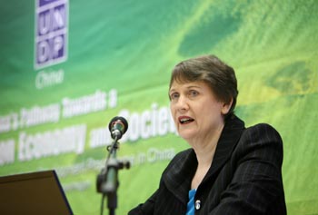 12月15日,在丹麥?zhǔn)锥几绫竟?lián)合國發(fā)展計劃署署長海倫·克拉克在“中國低碳經(jīng)濟(jì)與社會發(fā)展之路”高層研討會上致辭。據(jù)這次研討會透露,中國將在2010年發(fā)布關(guān)于低碳經(jīng)濟(jì)和可持續(xù)未來社會的《國家人類發(fā)展報告》。該報告將依據(jù)一套切實可行的政策選擇,陳述中國低碳經(jīng)濟(jì)和中國社會道路的政策平臺,同時也將社會發(fā)展納入考慮。新華社記者