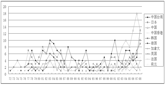 作為美國貿(mào)易保護主義的典型代表和貿(mào)易制裁的單方條款,337調(diào)查給國際貿(mào)易和產(chǎn)業(yè)發(fā)展帶來了很大的負面影響,并引發(fā)了世界各國的強烈不滿。 1983年,加拿大政府向GATT提請成立專家小組認定337條款違反GATT的規(guī)范;1989年,歐洲共同體向GATT就337條款與GATT之規(guī)定不符提請專家小組審理;2000年,歐盟要求在WTO框架下進行337條款的磋商,加拿大、日本也相繼加入;此外,美國國內(nèi)主張自由貿(mào)易的力量也對337條款頗有微詞。 20世紀70年代,隨著日本經(jīng)濟的振興和產(chǎn)品大量出口美國,日本成為337調(diào)查的主要目標,中國臺灣、中國香港和韓國等緊隨其后;20世紀80年代,中國臺灣超越日本,成為337調(diào)查的最大目標,日本、德國和中國香港緊隨其后,也是337調(diào)查的主要國家和地區(qū);20世紀90年代,隨著美國經(jīng)濟的繁榮和對外貿(mào)易的需要,337調(diào)查也相應(yīng)的進入低谷,受調(diào)查最多的國家和地區(qū)依次為中國臺灣、日本、加拿大和德國。進入21世紀以來,隨著中國產(chǎn)品大量出口美國,中國已成為337調(diào)查的最大目標國。隨著美國經(jīng)濟的衰退和貿(mào)易保護主義的抬頭,針對中國臺灣、日本、德國、韓國、中國香港、加拿大等國家和地區(qū)的337調(diào)查也在快速增長。(見表、圖)