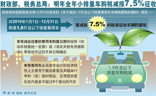 兩部委:明年全年小排量車(chē)購(gòu)稅減按7.5%征收