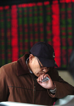 2010年:滬深股市“低調(diào)”開局。 1月4日,股民在合肥一家證券營業(yè)部內(nèi)關(guān)注股市行情。新華社記者 劉軍喜