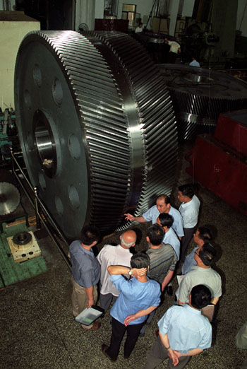 重慶齒輪箱有限責(zé)任公司生產(chǎn)的亞洲最大齒輪。(資料照片) |