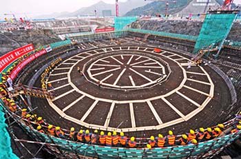 2009年12月15日,中國首個第三代核電自主化依托項目——中核集團(tuán)公司三門核電工程一期工程2號機(jī)組核島正式開工建設(shè)。這標(biāo)志著全球首座AP1000核電站建設(shè)進(jìn)入全面施工階段。新華社記者 譚進(jìn)/攝 |