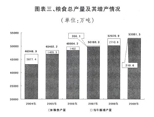 “三農(nóng)”投入大幅增加。全年中央財政用于“三農(nóng)”的支出達(dá)7253.1億元,比上年增長21.8%,其中,中央基建投資1890億元,增長1.5倍;對農(nóng)民的四項補(bǔ)貼1274.5億元,增加244.1億元。銀行涉農(nóng)貸款年末余額突破9萬億元,增長34.8%。啟動實施《全國新增1000億斤糧食生產(chǎn)能力規(guī)劃(2009-2020年)》。大型灌區(qū)節(jié)水改造、大型泵站更新改造、病險水庫除險加固,以及糧棉油糖等重要農(nóng)產(chǎn)品生產(chǎn)基地和倉儲物流設(shè)施的建設(shè)繼續(xù)加強(qiáng),對種養(yǎng)業(yè)良種工程、生豬和奶牛標(biāo)準(zhǔn)化規(guī)模養(yǎng)殖、植保工程和動物防疫體系、農(nóng)產(chǎn)品質(zhì)量檢驗檢測體系以及糧食豐產(chǎn)科技工程等支持力度加大。