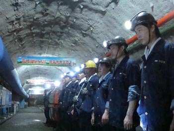 在魯南某礦千米井下,作業(yè)礦工在進行班前訓示,加強安全警示。本報記者 呂福明