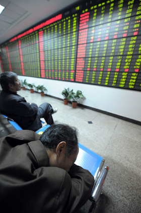 4月19日,滬市失守3000點。股民在安徽合肥一證券交易大廳內(nèi)關(guān)注行情。新華社記者 郭晨