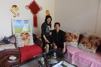 2010年4月30日,何先通和妻子卿廣玲在新家里。何、卿兩人在2009年7月重組了家庭。 |