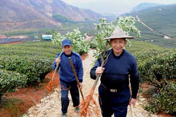 福建省建甌市東游鎮(zhèn)黨口村農(nóng)民在茶山種樹!∮浾