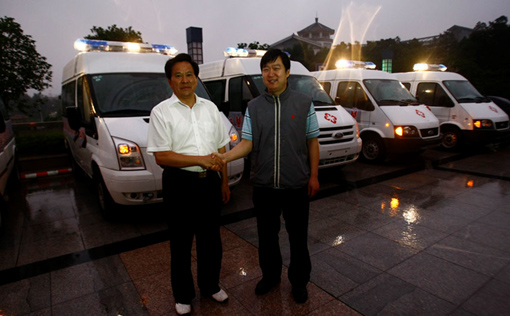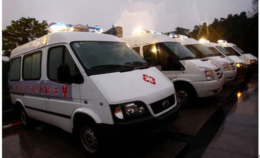江鈴緊急趕制的5輛福特全順救護(hù)車(chē)一到達(dá)災(zāi)區(qū),立即被派往受災(zāi)前線救護(hù)受災(zāi)民眾。 |