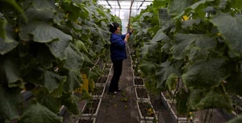 天水農(nóng)業(yè)示范園區(qū)的農(nóng)技人員正在勞作。本報(bào)記者 連振祥 攝 |