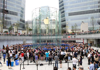 2010年7月,位于上海陸家嘴的中國(guó)內(nèi)地第二家Applestore開(kāi)業(yè),人山人海。蘋(píng)果公司對(duì)待中國(guó)市場(chǎng)的態(tài)度與中國(guó)蘋(píng)果迷的熱情形成了鮮明對(duì)比。新華社記者 凡軍/攝 |