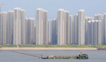 記者日前從長沙市建委獲悉,2010年上半年長沙房地產(chǎn)成交面積同比增長103%。據(jù)長沙市房產(chǎn)研究中心最新統(tǒng)計數(shù)據(jù)顯示,上半年長沙市(含郊縣)商品房施工面積5589萬平方米,新開工面積1322萬平方米,竣工面積399萬平方米。上半年長沙市(含郊縣)實現(xiàn)商品房銷售面積1102萬平方米(其中新建商品房累計簽約80972套),銷售金額462億元。圖為長沙市湘江沿岸新建的商品房小區(qū)。新華社記者 龍弘濤/攝 |
