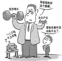 中國經濟已經持續(xù)20年高速增長,但是文化產業(yè)仍然是低位徘徊。數(shù)據(jù)顯示,2004年,中國文化產業(yè)實現(xiàn)增加值3440億元,僅占GDP的2.15%;從業(yè)人員996萬人,僅占中國全部從業(yè)人員的1.3%。目前中國上萬億美元的外貿額中,出口已經過半,但其中的文化產品出口不到1%。